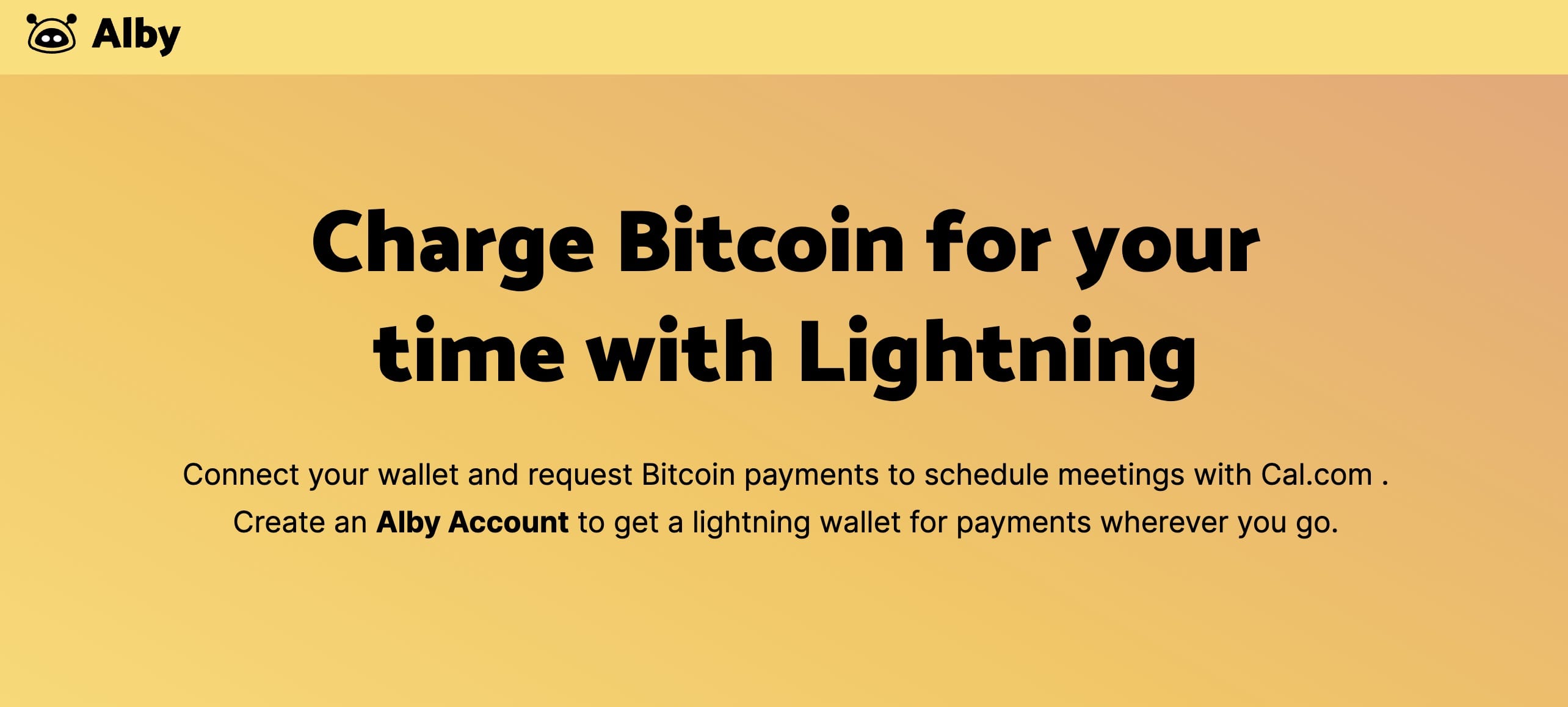 Your Bitcoin & Nostr companion for the web. Use Alby to charge Satoshi for your Cal.com meetings.